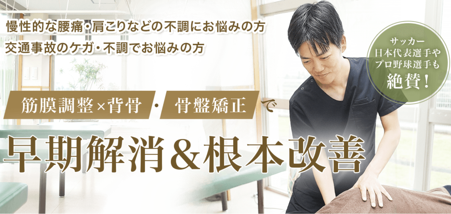骨盤矯正を中心に首・肩・腰の慢性的な不調を改善