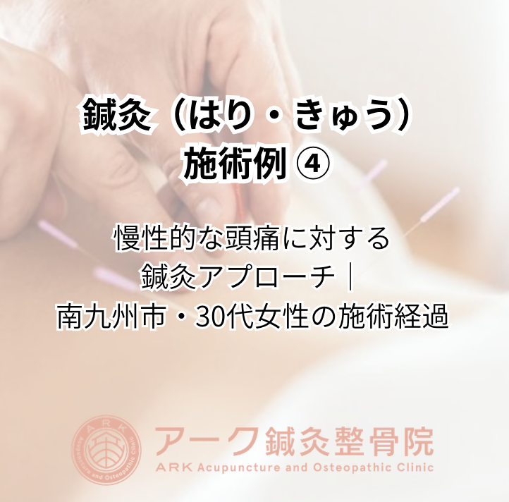 【症例報告④】慢性頭痛(緊張型頭痛)の鍼灸施術|南九州市30代女性の改善例| アーク鍼灸整骨院