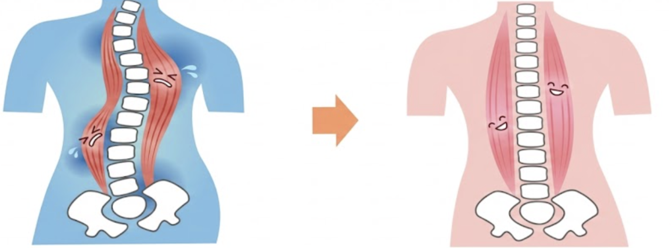 A5. はい、多くのケースで顕著な改善が見られます。慢性的な痛みの多くは、崩れた姿勢を支えるために特定の筋肉がオーバーワーク(過負荷)になった結果です。根本原因である姿勢(構造)を整えれば、痛み(症状)は自然と引いていきます。