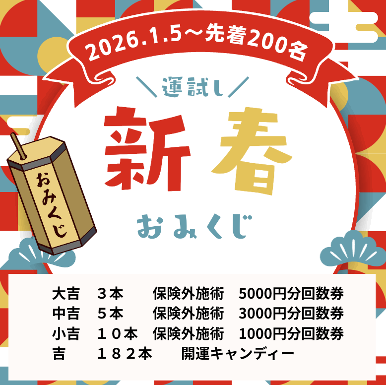 新年について 新年は 1月5日月曜日より診療を開始いたします。 2026年も、技術・知識の研鑽を怠らず、皆様にとっての「一番頼りになる場所」であり続けられるよう、スタッフ一同精進してまいります。