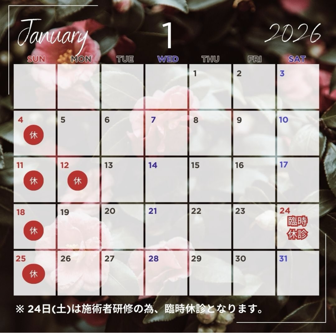 ・1月26日(月):院長・山口は出張のため 不在(※院の診療体制は別途ご確認ください)